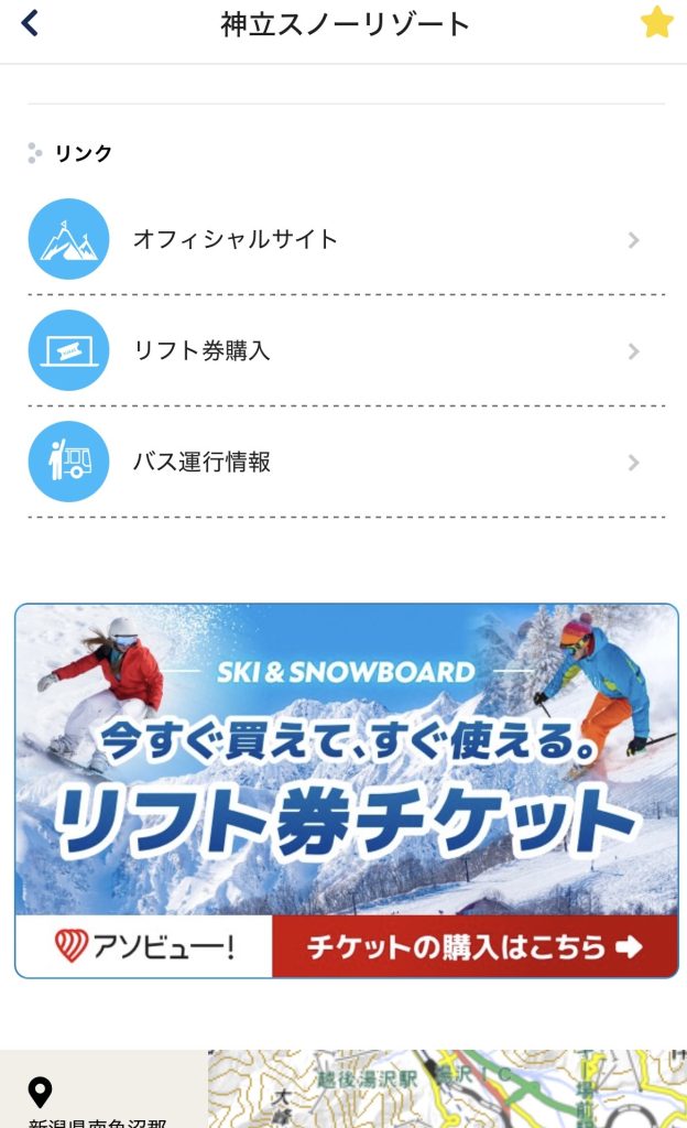 yukiyamaではアソビュー!との提携によりyukiyamaアプリからスキー場リフト券の購入が可能!