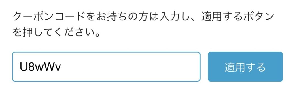 - 「クーポンコードを入力する」をタップし、上記コードを入力