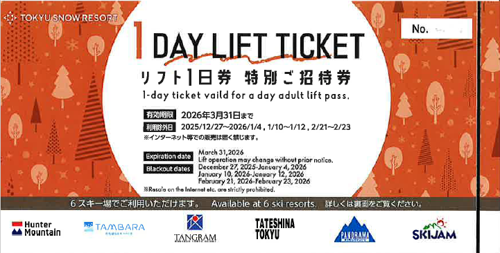 東急スノーリゾート共通リフト1日券は、2025-26シーズンにご利用いただけるチケットです。