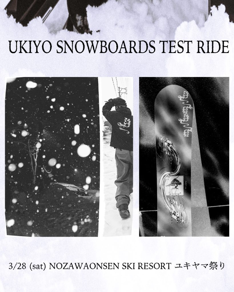 ボードとコラボアパレルが実際に見れて、試乗できるチャンスです。また、当日はUKIYOライダーも来場しています!