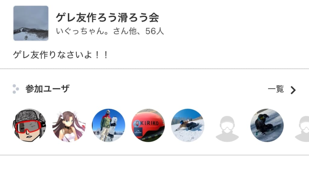 昨年の1位は2025年2月2日に斑尾高原にてyukiyama公認アンバサダーのいぐっちゃんが作成したグループ「ゲレ友作ろう滑ろう会」が参加人数57名で優勝!