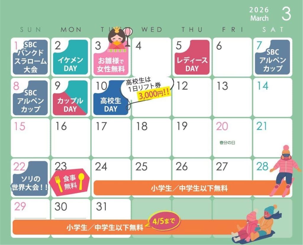 《食事無料日まだまだあるよ!引用:スノーリゾートロマンスの神様公式サイトより》