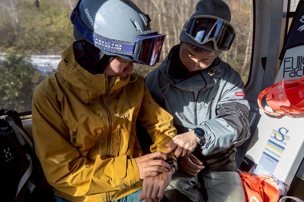 この後もお互いが必要に応じてウォッチを確認していた。位置情報が腕で見られるだけで、行動が途切れないのが印象的だった。滑走の合間には、ログを見ながら軽く話す場面もあった。