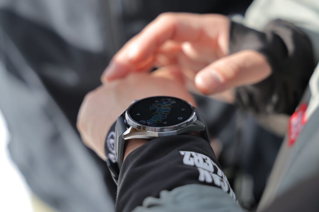 「毎回スマホを出して電源を入れる必要がなくて、手元で仲間の位置を確認できるのはすごく便利でした。スマホは落としそうな不安がありますが、時計ならそういう心配はほとんどないです」