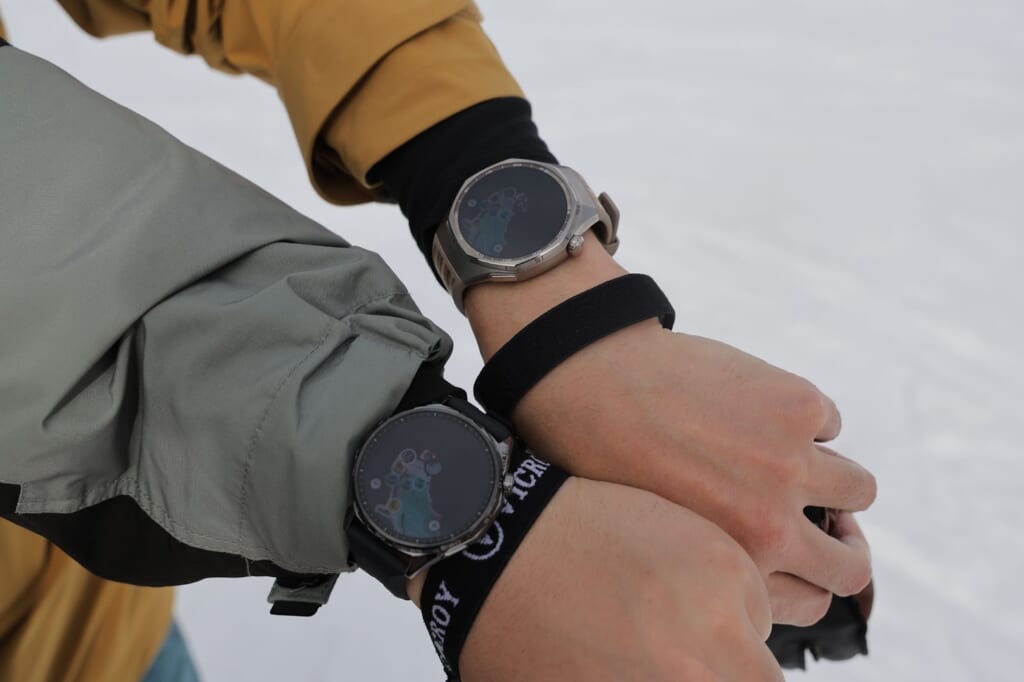 今回は、長野県在住の保田さんと山崎さんが12月上旬にオープンしたての栂池高原スキー場で滑ると聞き、その1日に密着。10年来の友人でもあるふたりに、実際に『HUAWEI WATCH GT 6シリーズ』(以降、WATCH GT 6)で一足先にyukiyamaを使ってもらいながら、今シーズン初めての白馬でのセッションを追うことにした。