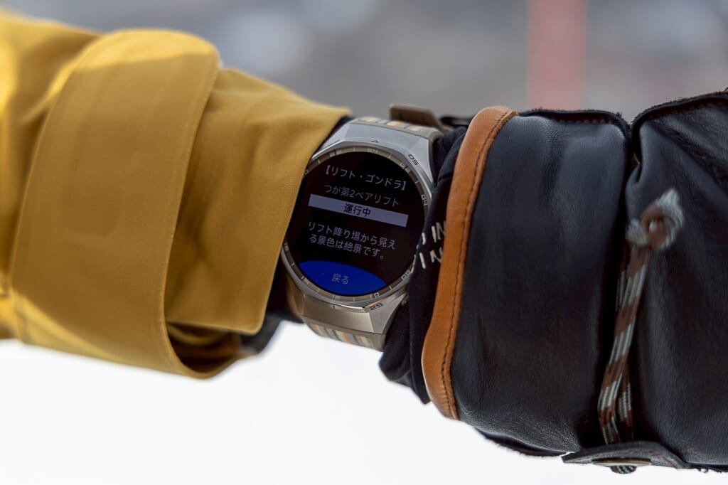 山崎さんは、リフト乗り場付近でウォッチのマップ画面を開き、表示されているリフトをタップしていた。運行状況がその場で確認でき、どのルートで回るかの判断がしやすいようだった。
