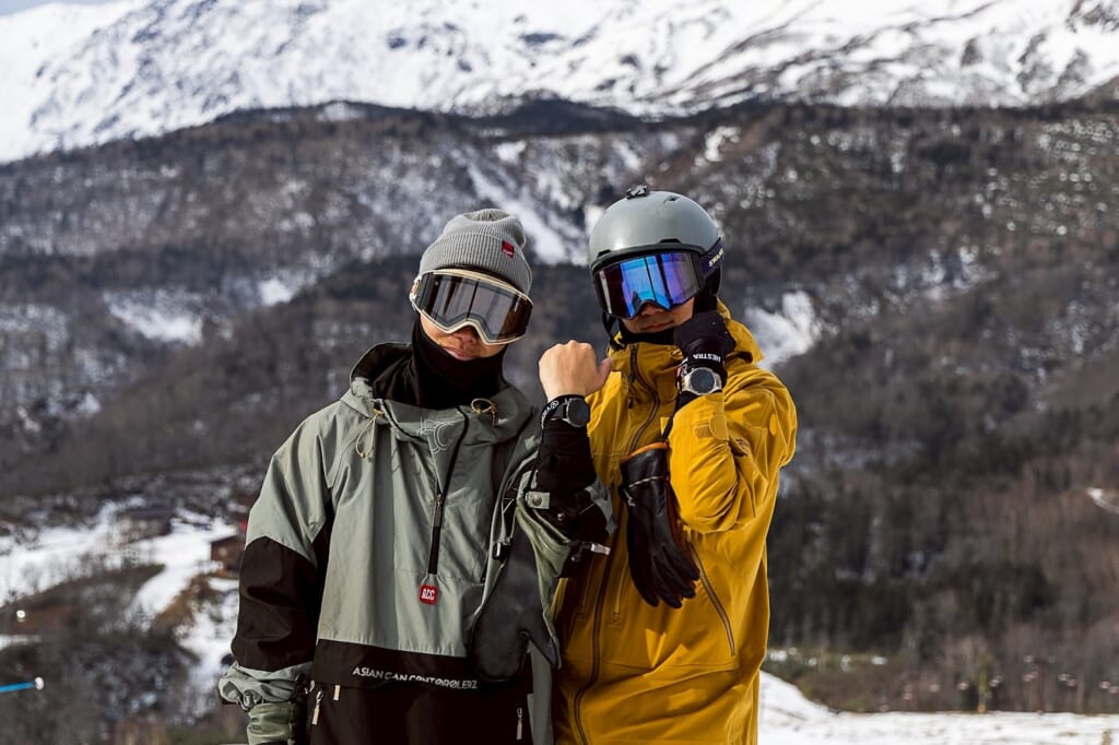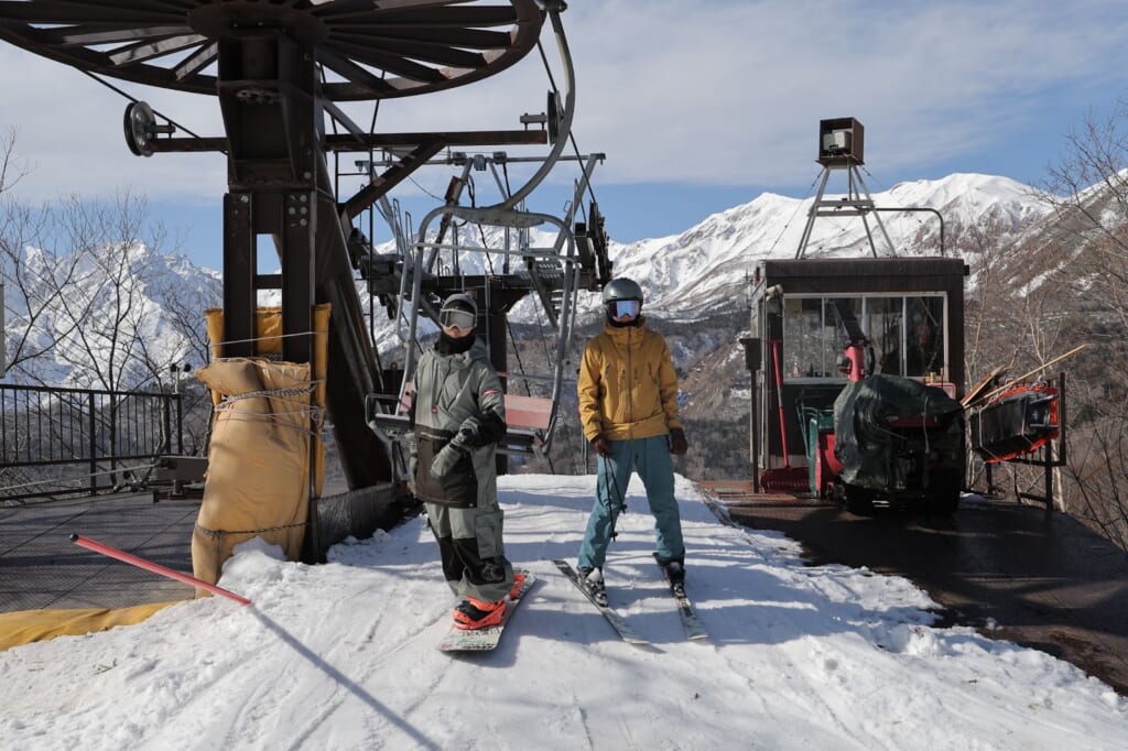 天然雪が積もりはじめ、長野県白馬村の栂池高原スキー場は12/1にオープンしていた。昨年ぶりにホームエリアでのセッションということもあり、二人の表情にはどこか期待感が現れている。