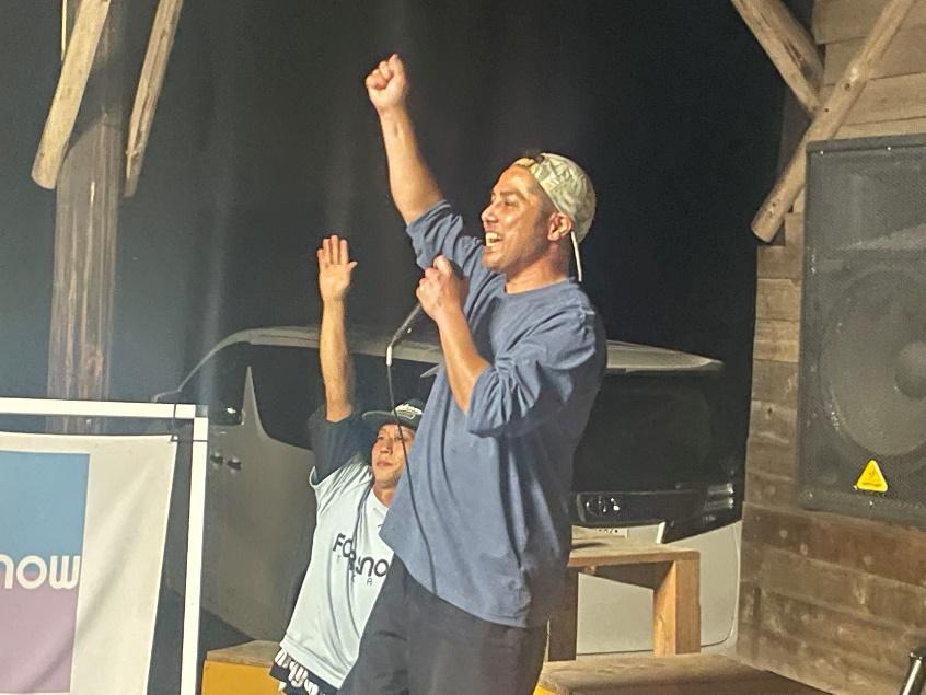 大会では、ハイシーズンさながらのスタイル全開の激渋エアーが飛び交い、競技後はBBQで乾杯、互いの健闘を称え合う。
