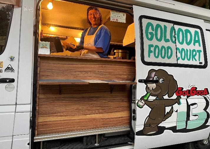 GOLGODA フードトラックも駆けつけ、オリジナルホットドッグやビールを販売