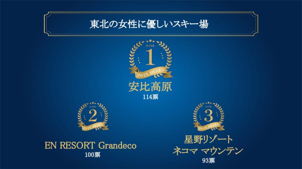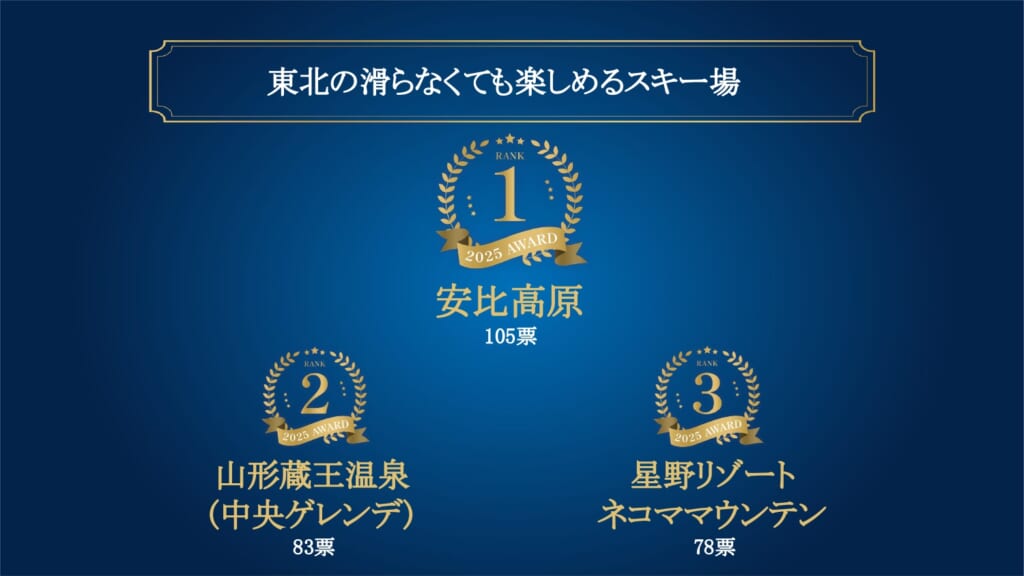 「自分のホームゲレンデが全国ではランクインしなかったけど、エリアならきっと評価されているはず」「地域ごとの特徴や魅力をもっと知りたい」そんなユーザーの想いに応える形で、新たにスタートしたのがこの【AFTER AWARD】です。