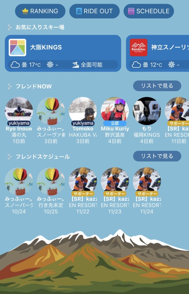 ・アプリ背景を2025-2026シーズン仕様に変更しました。今年の背景は八ヶ岳連峰となります!