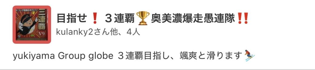 滑走距離賞では2月15日のダイナランドで作成された「目指せ❗️3連覇🏆奥美濃爆走愚連隊‼️」が優勝となりました!
